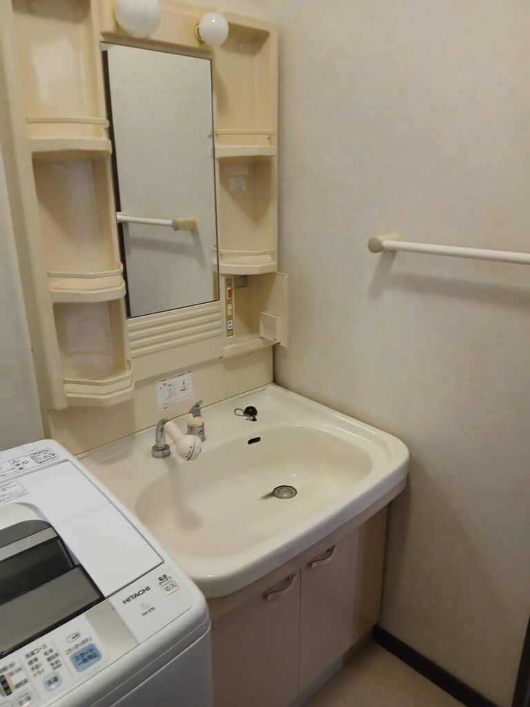 施工後のお写真です。 1面鏡のPV洗面化粧台を設置いたしました。 洗面ボールも比較的広くなり 満足されました。