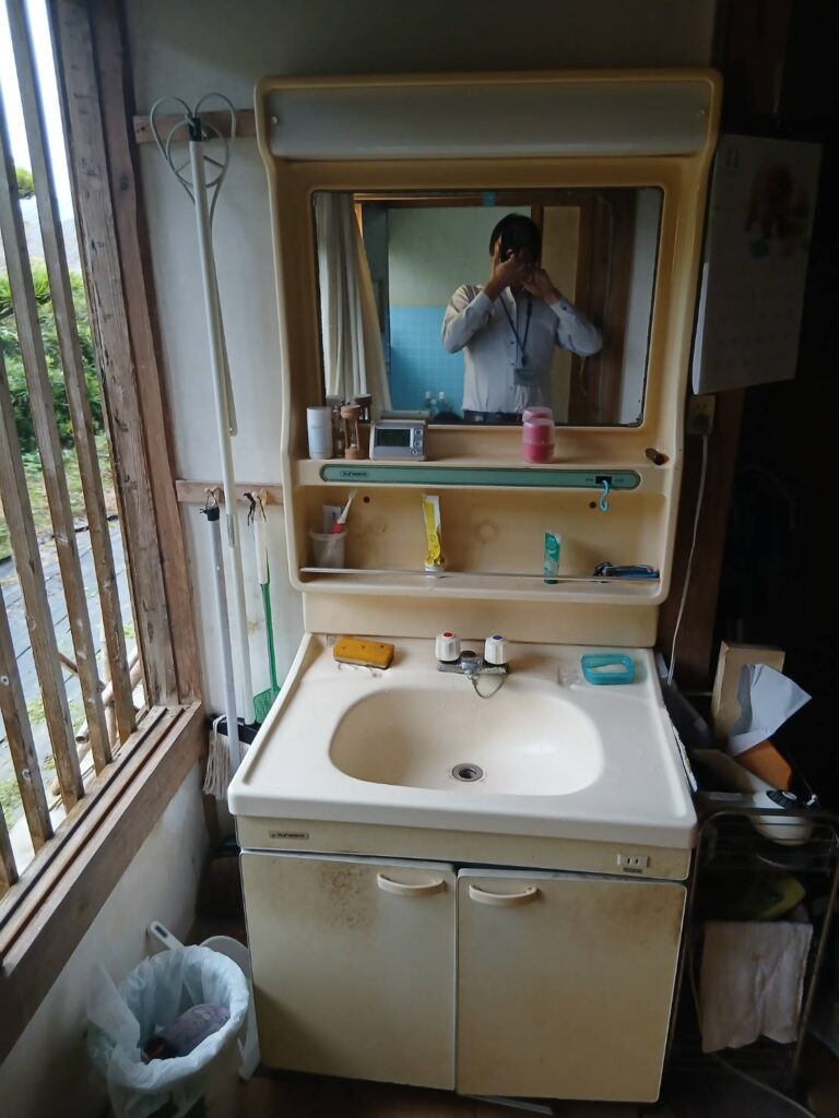 施工前のお写真です。 洗面ボールが、小さくて不便との事でしたので TOTOのVシリーズ(展示品)を オススメしました。